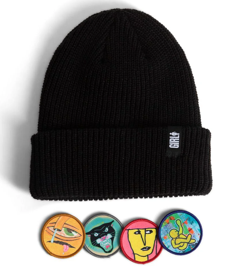 This beanie comes with 4 patches with velcro on the back to swap out.